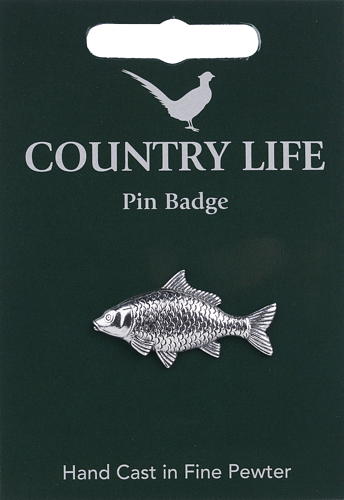 A carp in pewter supplied on a pin with clasp. The information card gives details about the countryside.