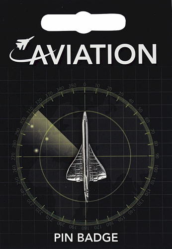 A Concorde in pewter supplied on a pin with clasp. The information card gives a brief history about the developments in aviation.