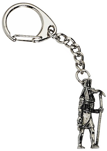 A pewter Egyptian God figure on a quality key chain. The mix of four gods supplied are, Anubis, Bast, Horus and Osiris. The key-ring is supplied with a header card.
