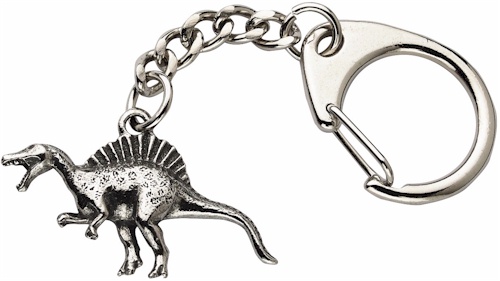 A Spinosaurus in pewter supplied on quality key chain. The key-ring is supplied with a header card.
