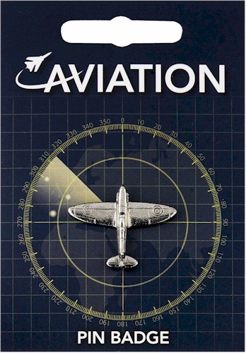 A Spitfire in pewter supplied on a pin with clasp. The information card gives a brief history about the developments in aviation.