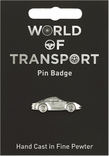 A sports car in pewter supplied on a pin with clasp. The information card describes about the evolution of transportation from donkeys to cars.