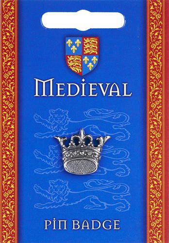Pewter crown of St Edward supplied on a pin with clasp. The information on the reverse of the card explains about heraldry and heraldic designs.