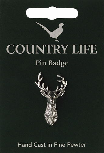 A Stags head in pewter supplied on a pin with clasp. The information card gives details about the countryside.