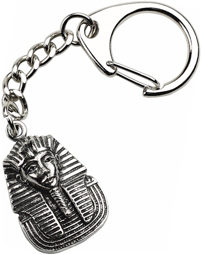 A pewter Tutankhamun mask supplied on a quality key chain. The key-ring is supplied with a header card.