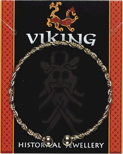 Twisted gold plated bracelet. The information on the reverse of the card describes why the Vikings wore jewellery and how it evolved.